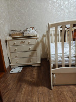 Продаю детскую мебель. Кроватка 2 в 1: люльку можно снять и сделать односпальную кровать. Ящики вместительные. Ребёнок практически не лежал. Матрас и держатель для балдахина отдам вместе с мебелью. Покупала намного дороже.